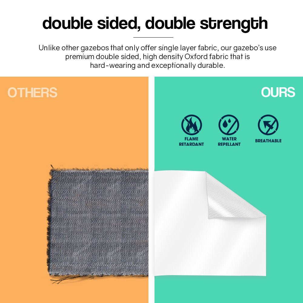 Featuring a super-strong triangulated steel frame care of its premium steel square tube legs and high-quality nylon joints, the Red Track 3x3m Gazebos will provide an unobtrusive haven. With effortless set up in four easy steps; pull them out like a concertina, place the canopy on top, lock the roof in place, then set the height with the smooth height adjusters and you're done - it's your time to relax! You can count on them to stay in place, thanks to the double-stitched anchor points and included stakes.
