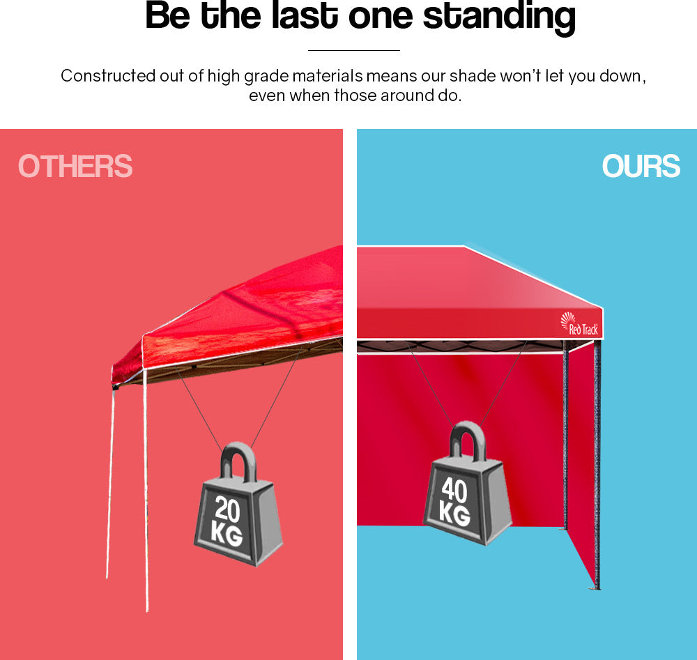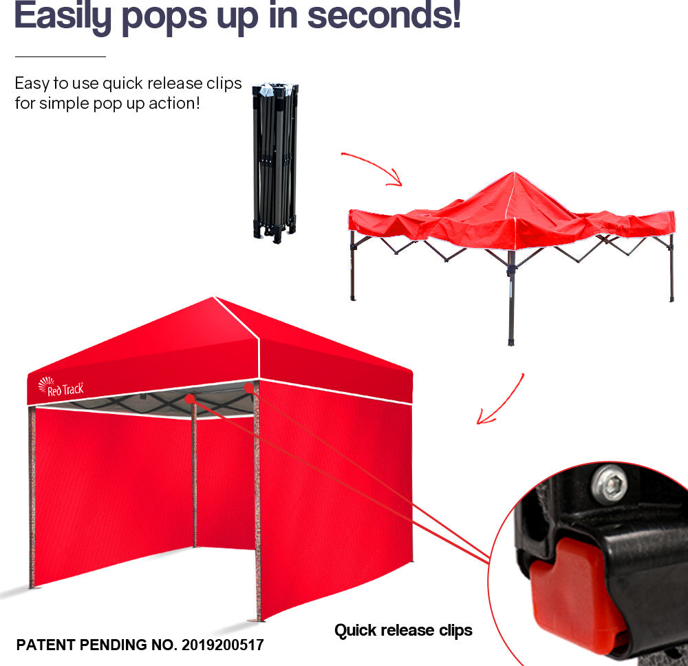 Quick and easy to assemble, the Red Track gazebos will provide reliable protection your outdoor experience deserves. The easy maneuverability of the Portable Gazebos ensure that shelter-ready-protection is at your fingertips, making them ideal for garage sales, weddings, picnics, markets, trade shows, camping or sporting events, to name but a few!