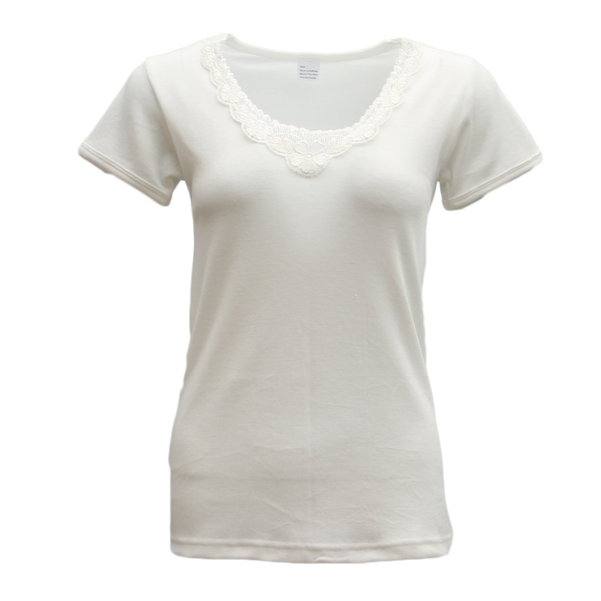 Womens Merino Wool Top Pants Thermal Leggings Long Johns Underwear Pajamas, Women's Short Sleeve - Beige, 10-12
