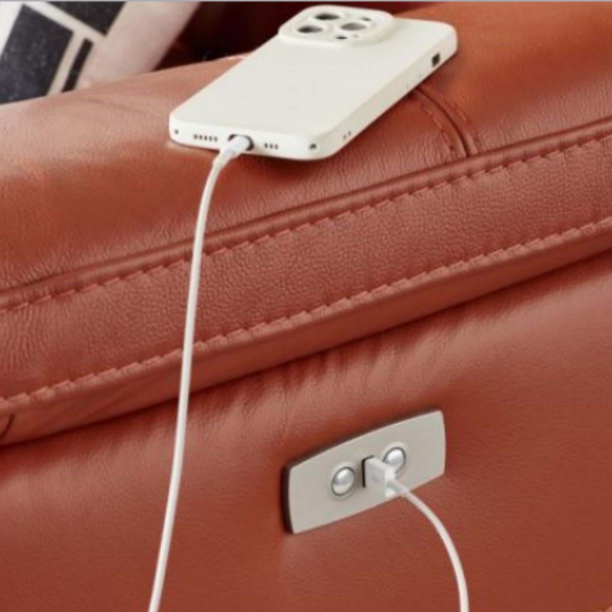 This luxurious lounge adds heavenly comfort to your leisure activities. The elegant 3-seater lounge in Tan colour decorates your living area, office, or shop. It consists of ER with USB, an armless ER and a Right Hand static chaise. Designed in a modern style, the lounge features padded arms and an elevated seat. It features electric headrests and tapered timber legs. There is a USB port that keeps your mobile devices charged. Upholstered in Corrected Grain / Split leather, the lounge looks gorgeous in any interior decor setting or room theme. Its structural frame is made of sustainably harvested pine and plywood, while its recliner mechanism is based on strong material with maximum weight limit of 120 kg. The S-spring, dense foam, and webbing ensure the best seating support. The lounge is highly durable. It comes with a one-year warranty.