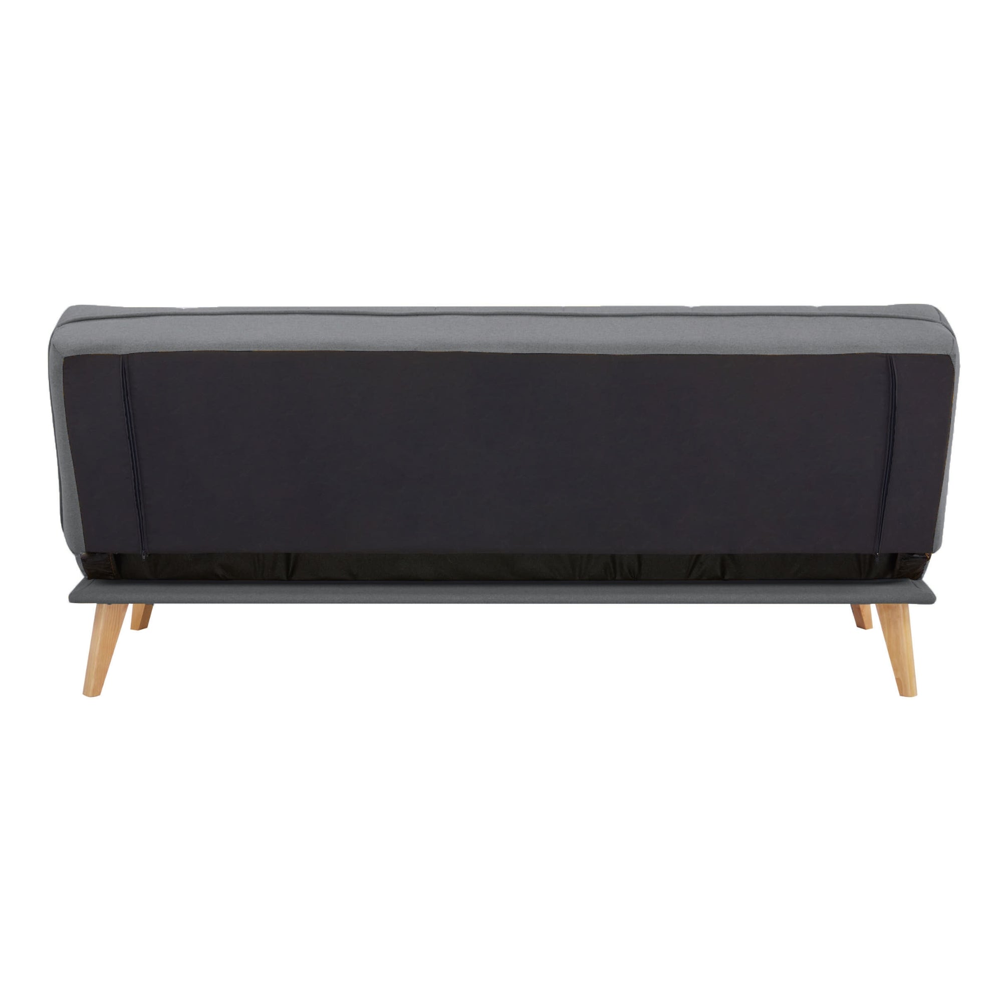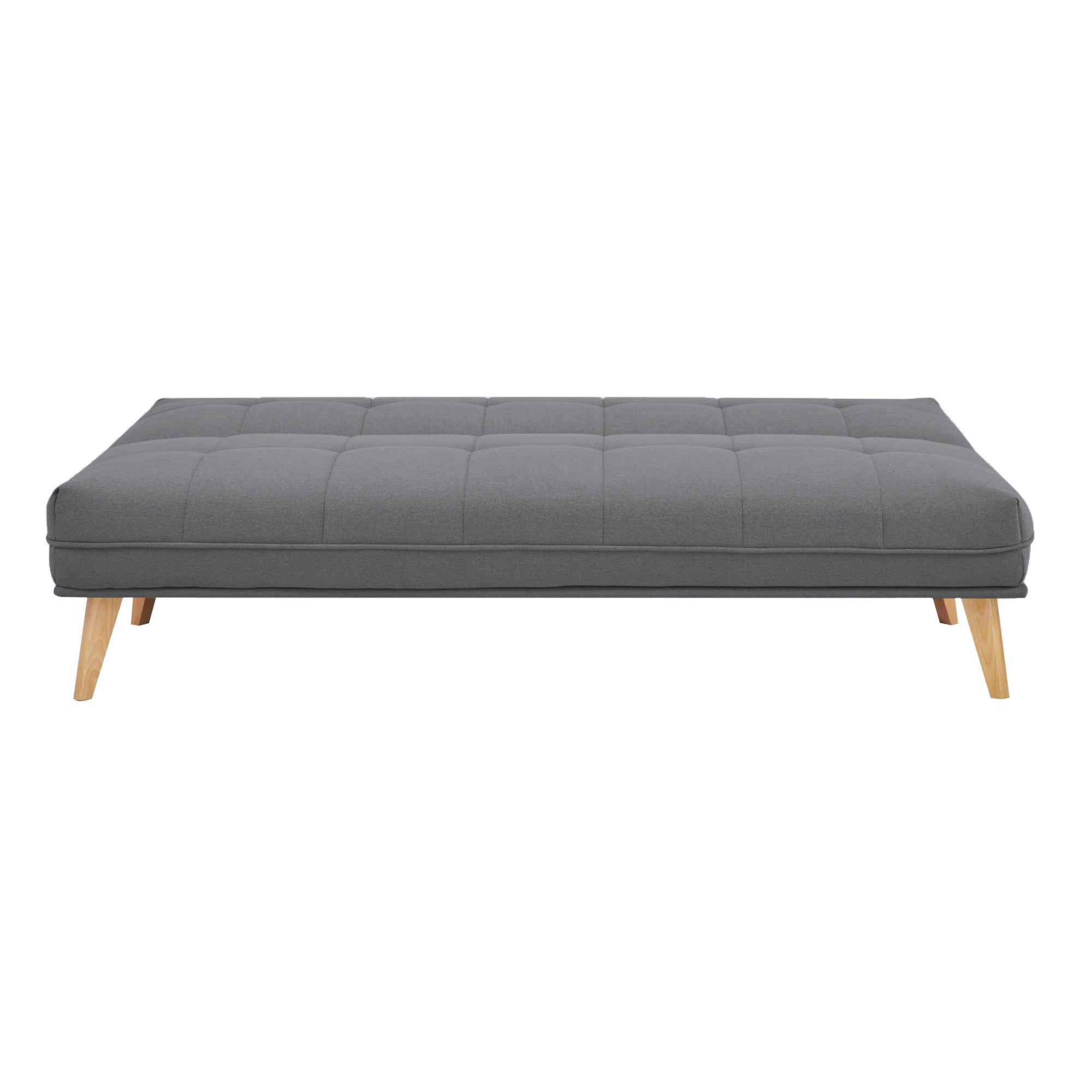 This gorgeous 3-seater sofa bed in mid grey ensures luxury and comfort with space-saving qualities. The Scandinavian-style furniture, with stitching on the cover, is upholstered in a plush upholstery made of high-performance 100% polyester. The upholstery has a smooth fit due to the intact tailoring on the frame. The solid pine wood and plywood frame make the sofa bed light and highly durable. The durable frame with seating support made of thick bonded foam, fabric, and high-tensile S springs ensures heavenly comfort when you relax on it. Tapered, wooden legs in natural colour give the furniture a strong base. The sofa is easy to assemble; only the legs need assembly. The long-lasting furniture comes with a 1-year warranty.