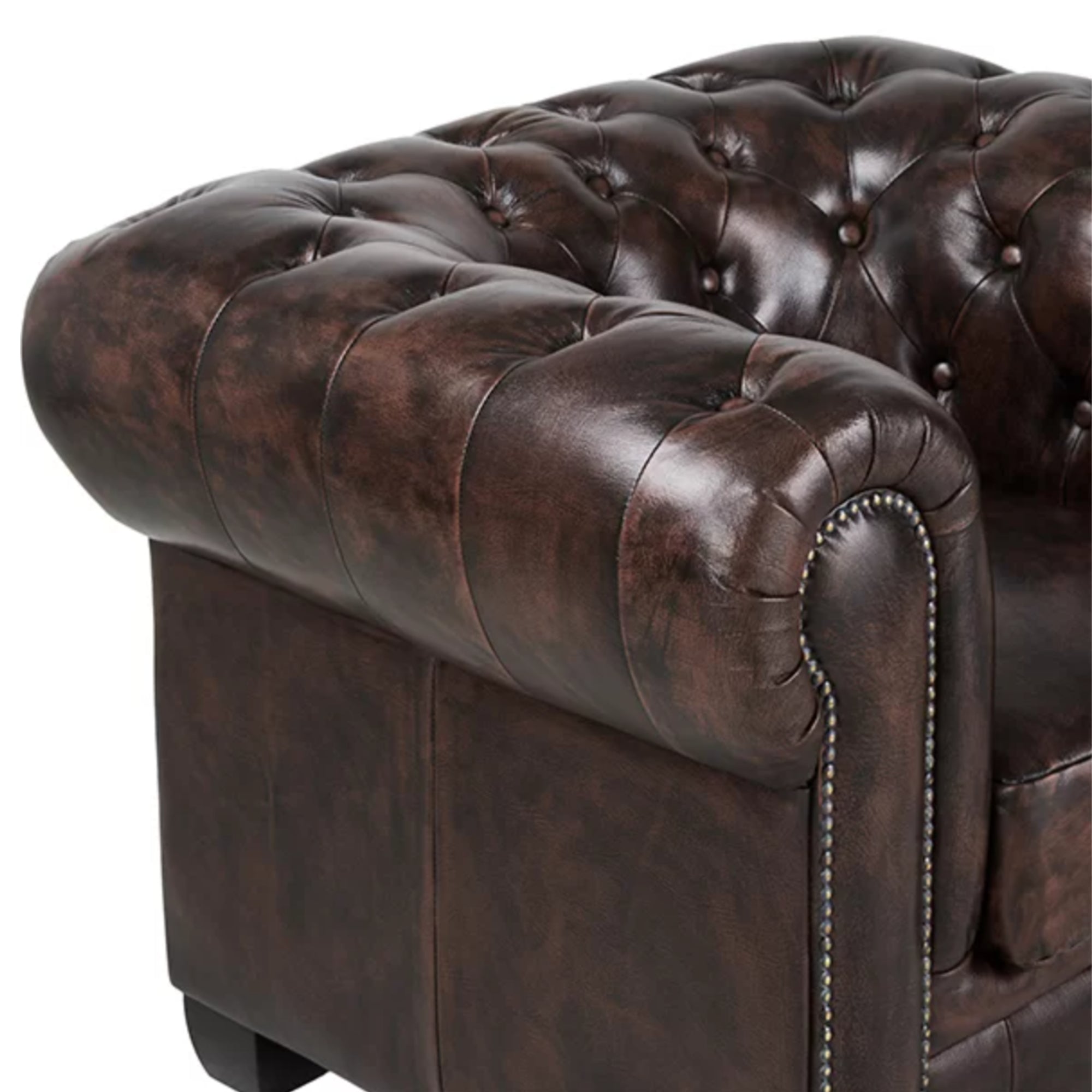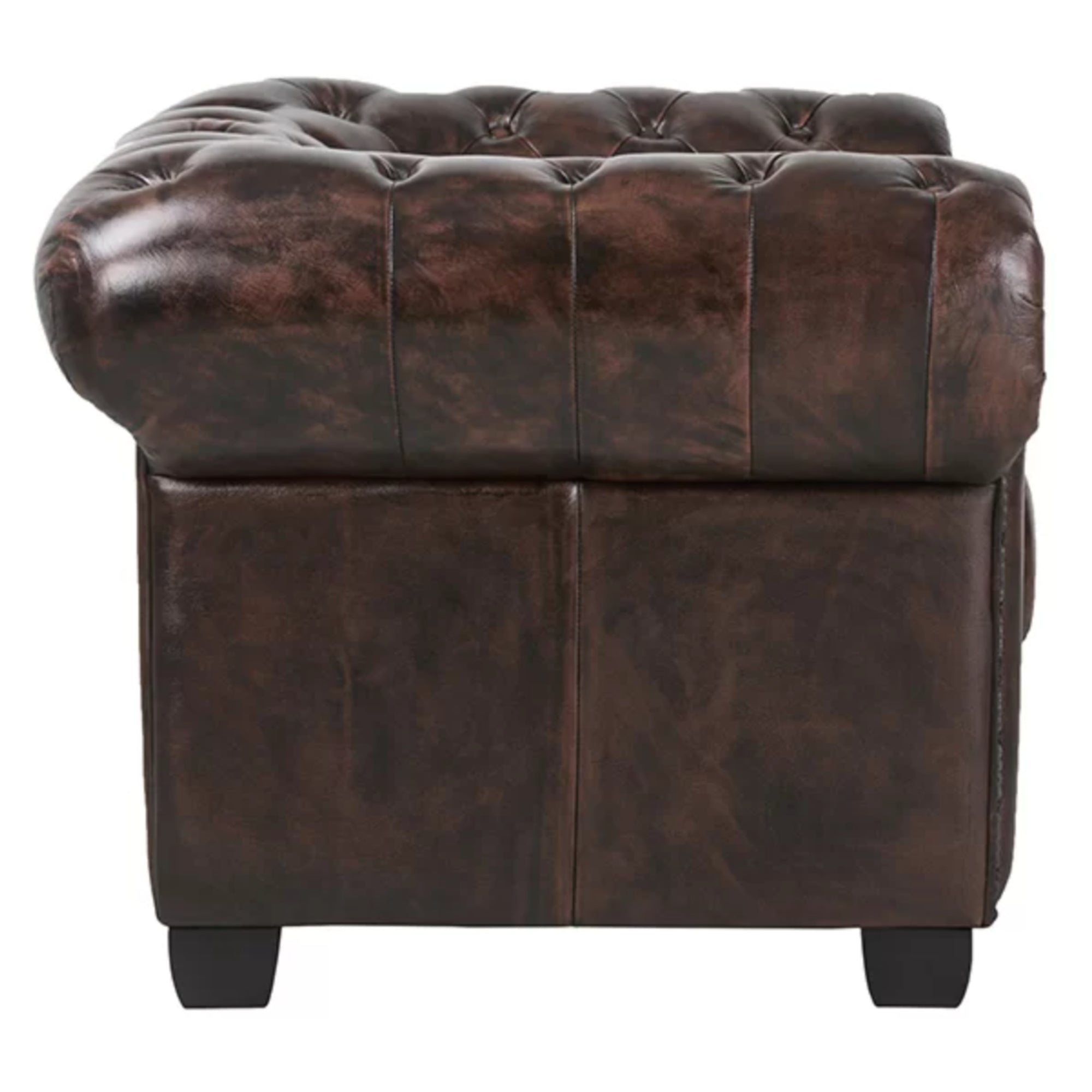 Max Chesterfield Armchair Single Seater Sofa Genuine Leather Antique Brown