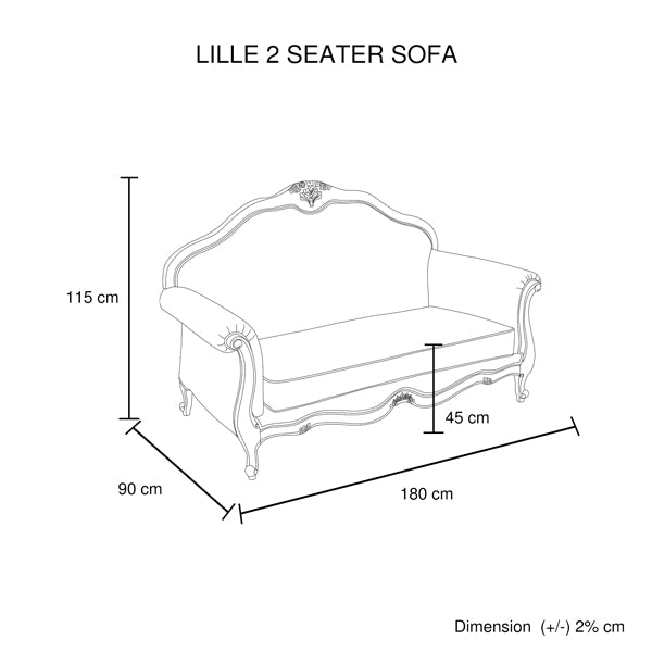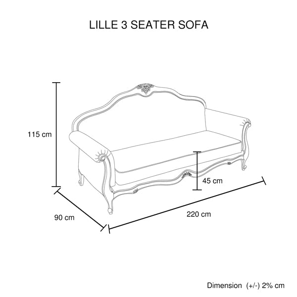 Our Lille sofa proudly boasts royal Chester Ford design and premium upholstered cover. Its medium high backrest has Oak wood frame and there is floral embellishment on top of the backrest. Lille range has set of one, two and three seater sofas.