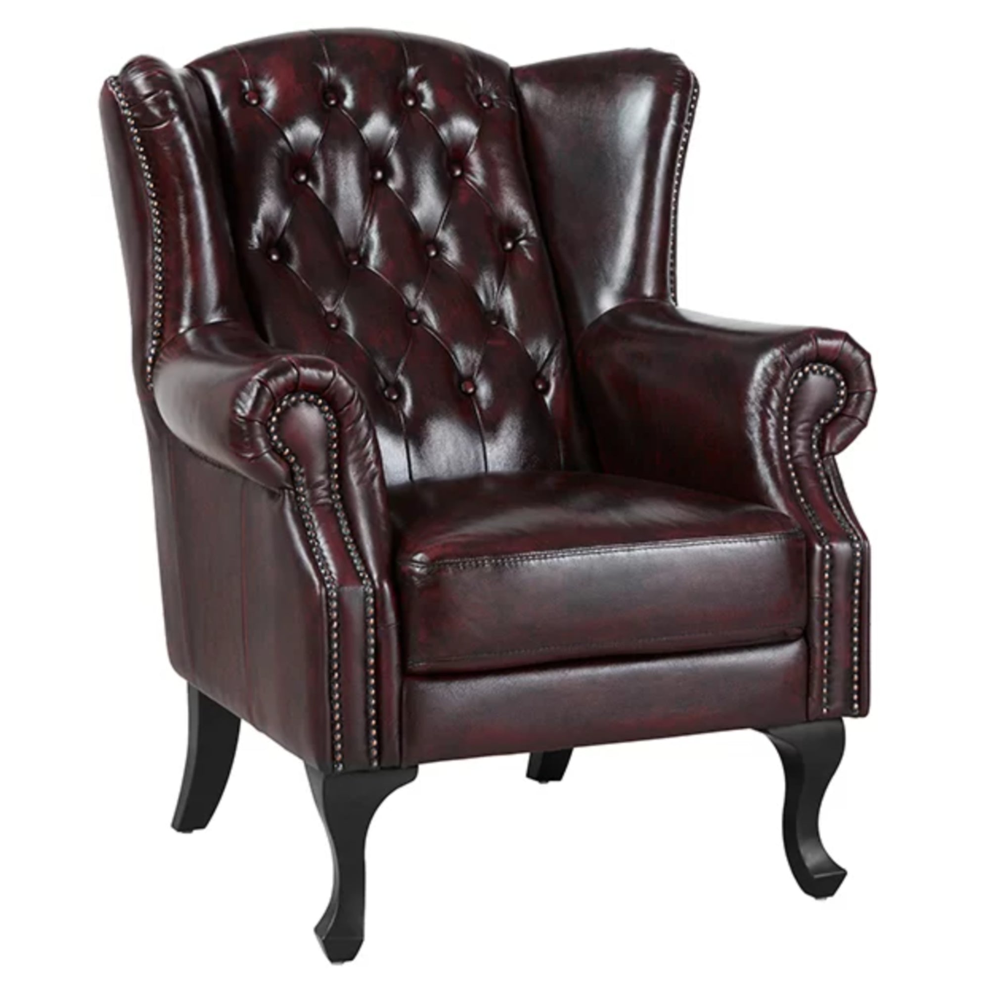 Max Chesterfield Winged Armchair Single Seater Sofa Genuine Leather Antique Red