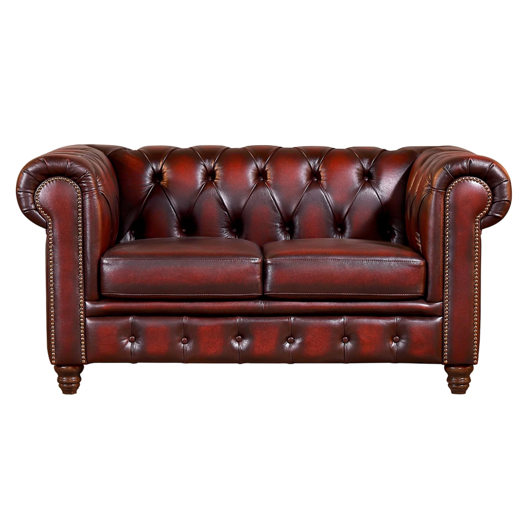 Max Chesterfield 2 Seater Sofa Lounge Genuine Leather Antique Red