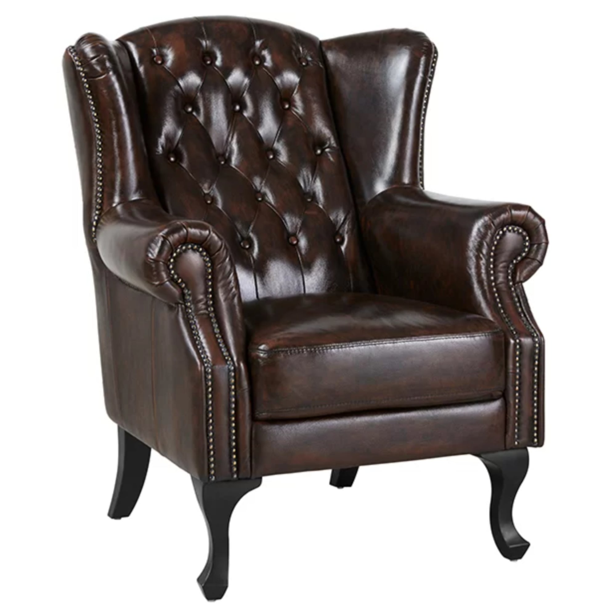 Max Chesterfield Winged Armchair Single Seater Sofa Genuine Leather Antique Brown