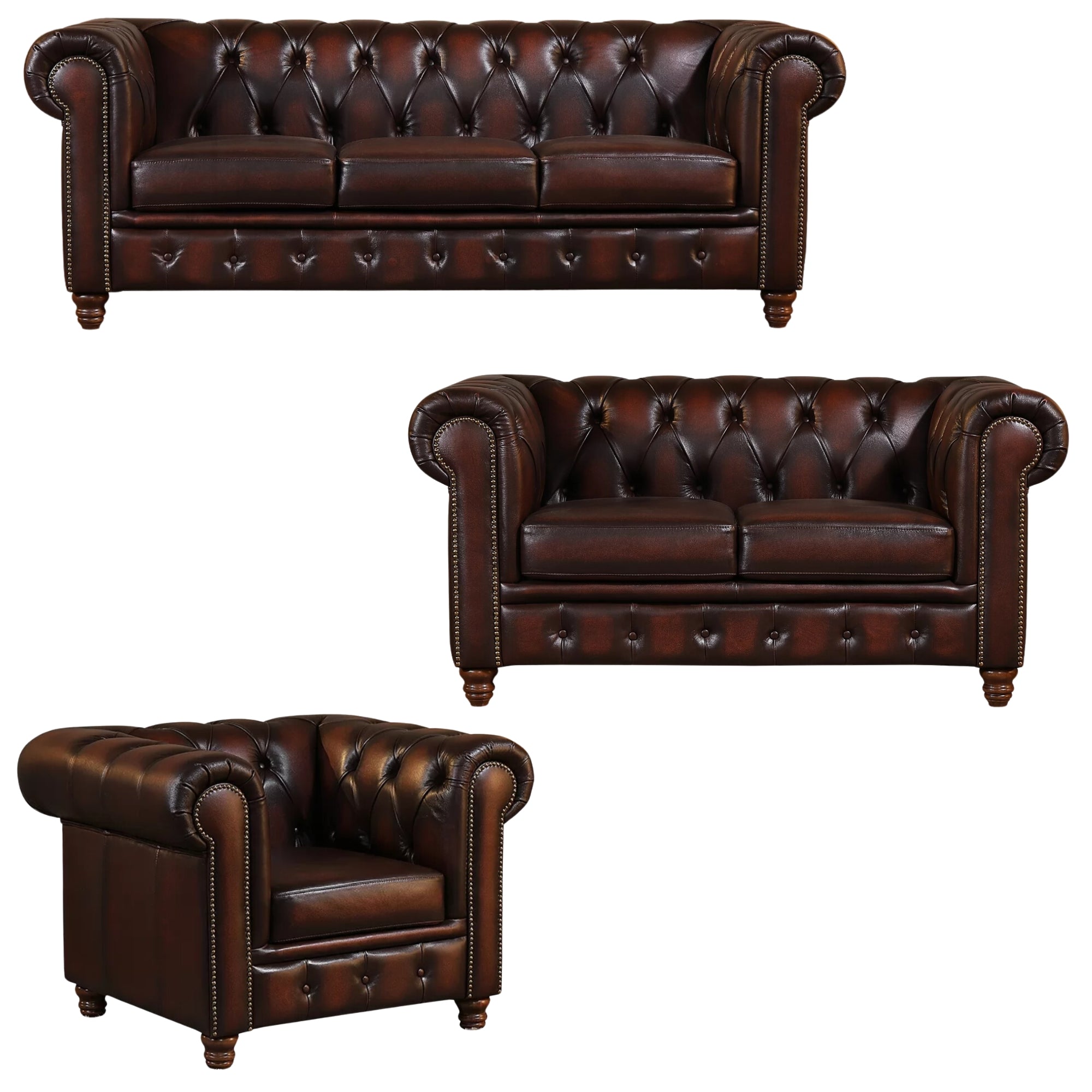 Max Chesterfield 1+2+3 Seater Sofa Set Lounge Genuine Leather Antique Brown