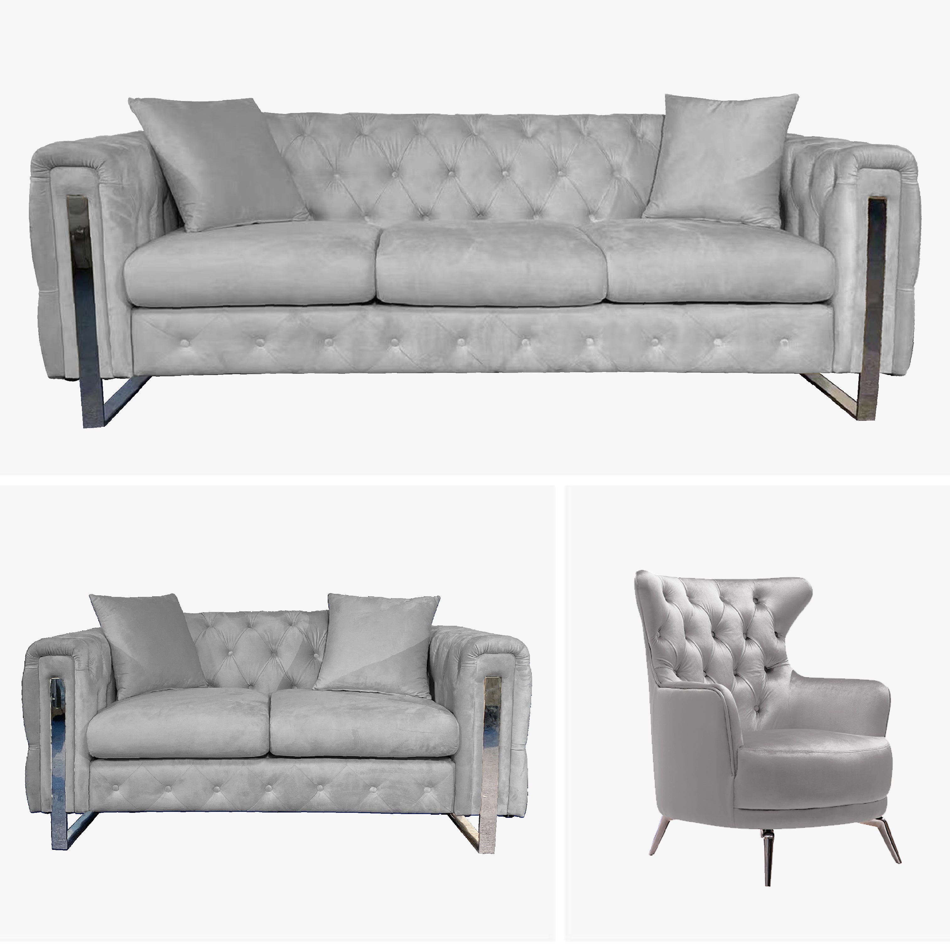 Madeline Range - Light Grey Velvet - Silver Trims