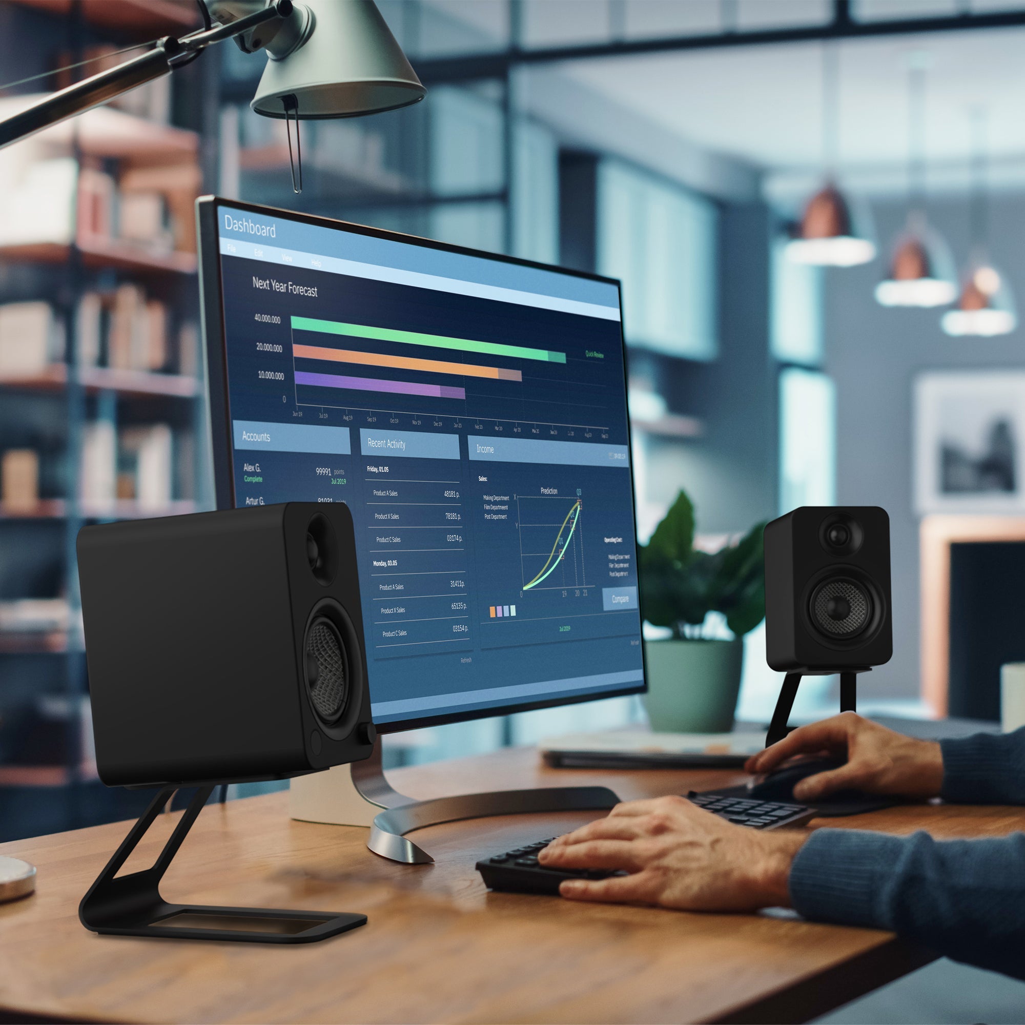 ACCURATE, ON-AXIS OUTPUT - Elevate and align your speakers with your ears so that you can enjoy flawless on-axis sound and prevent reflection from nearby surfaces.