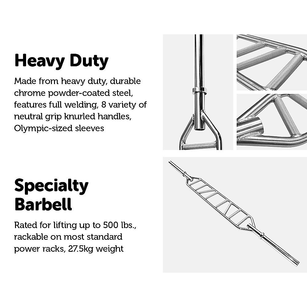 Among the many applications of this specialty barbell are the bench press, floor press, lockouts, JM press, and shoulder press.