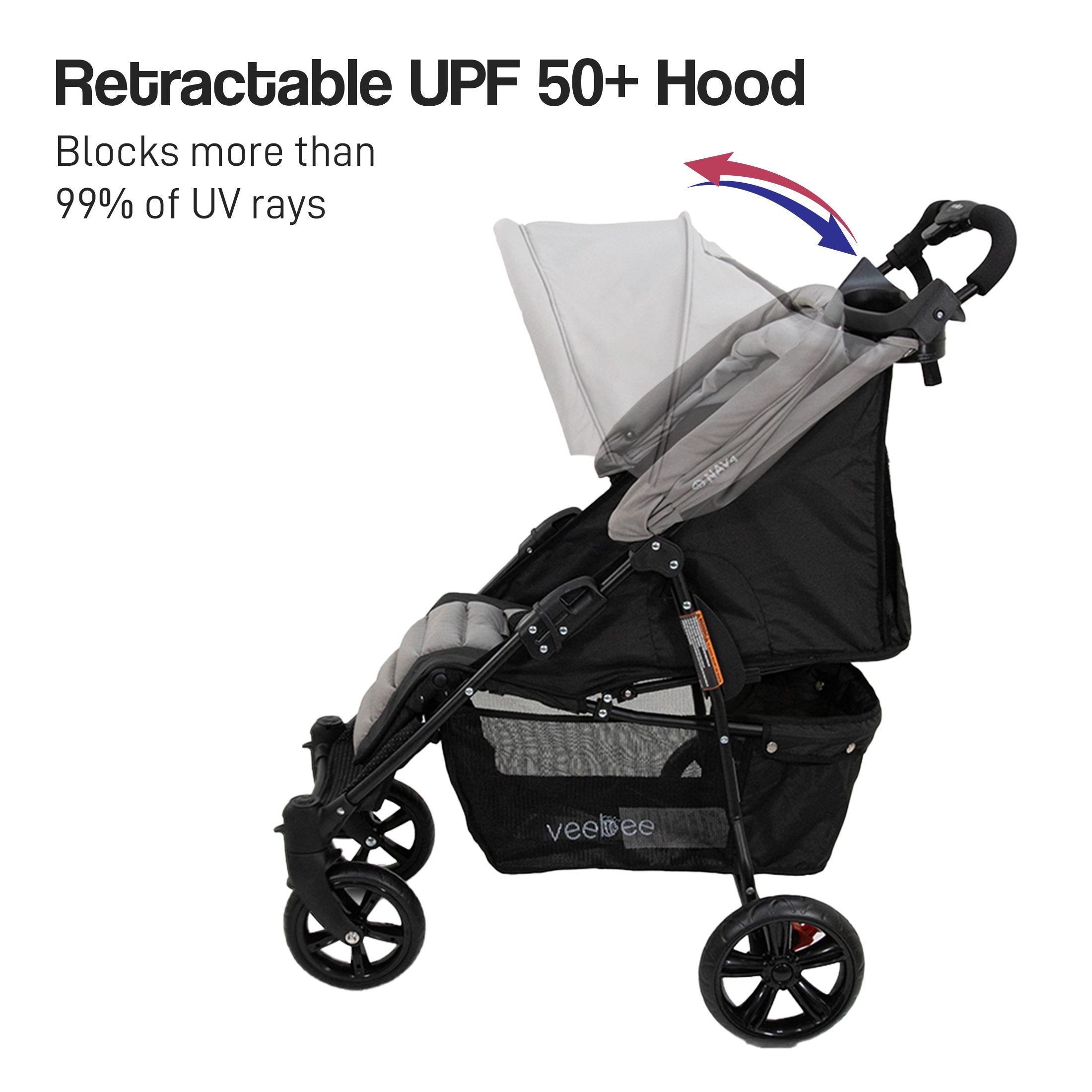 • Retractable UPF 50+ canopy blocks 99% of UV-A and UV-B rays