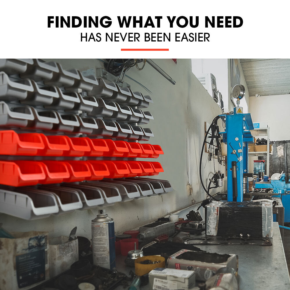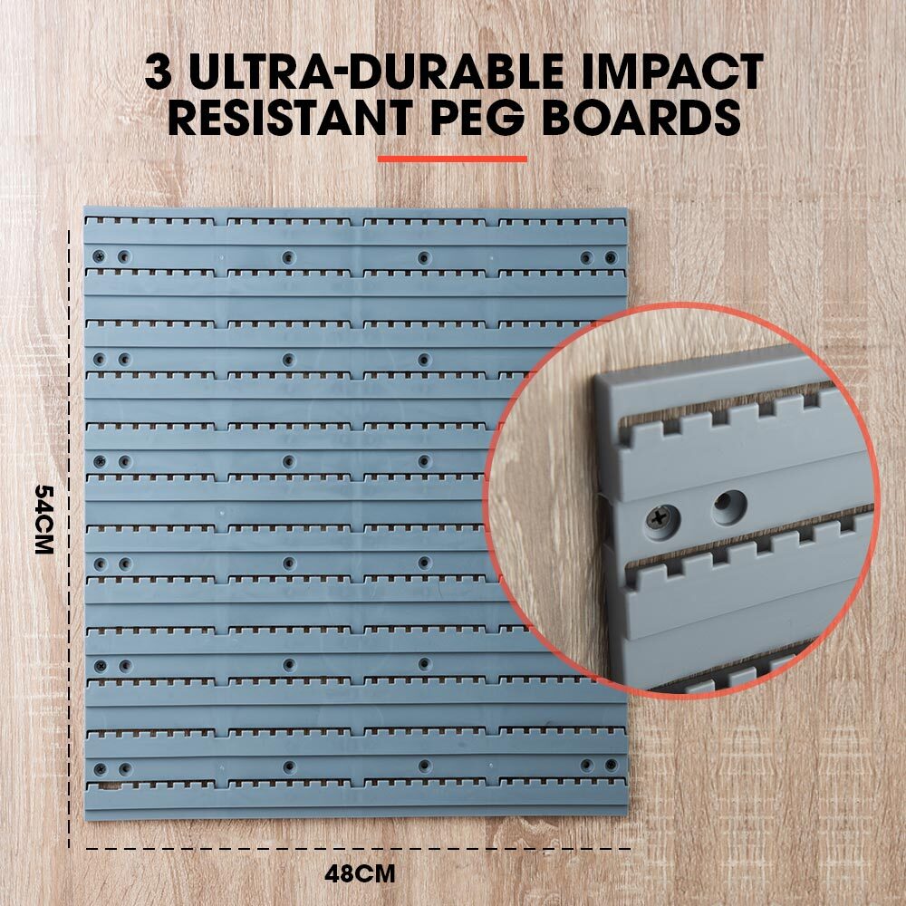 Keep your tools in one place and your workspace neat and tidy with the Baumr-AG Wall Mount Parts Bin Rack. The modular design makes it easy to organise and store loose parts and tools in your home garage or workshop. It comes complete with 52 tubs and 17 tool mounting options that can be positioned across 3 durable impact resistant pegboards.