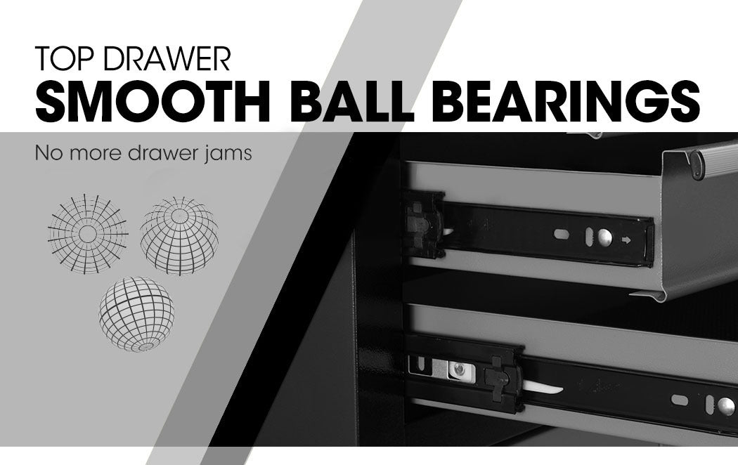 A superior tubular cam-lock system provides optimal security, with lockable drawers being perfect for storing valuable or often "borrowed" items, and the lower cabinet suitable for bulkier tools. Each drawer slides effortlessly in and out on smooth ball bearing rails, and mesh grip liners ensure your tools stay put when transporting. The cabinet also has a handy pegboard side panel offering the option to hang items.