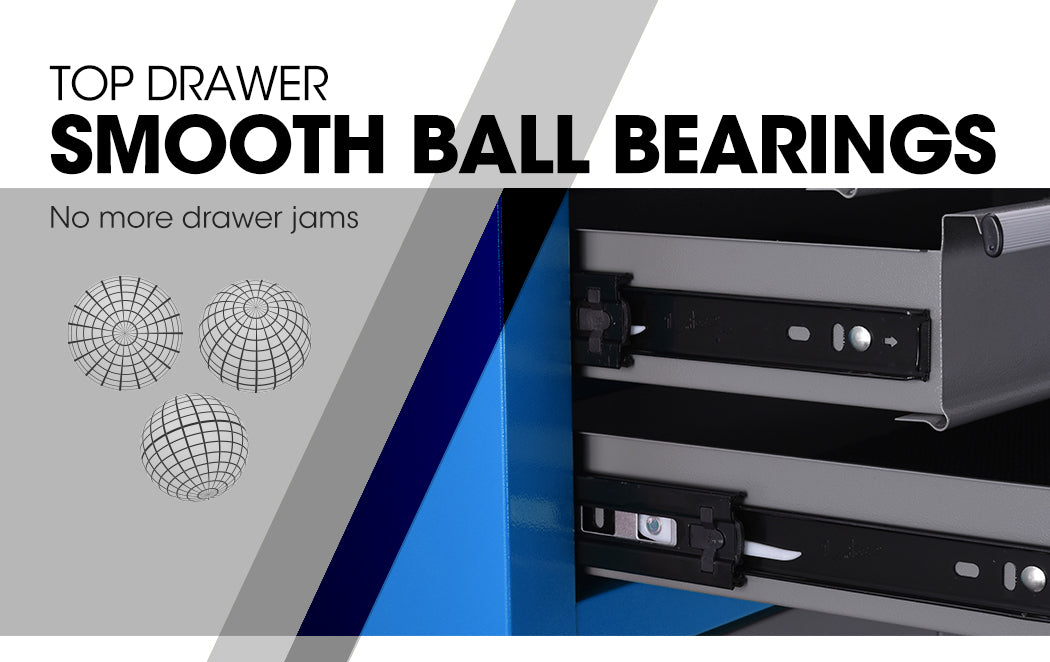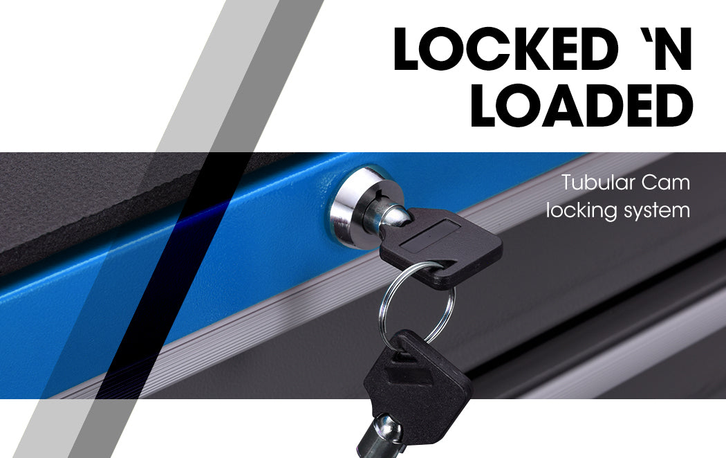 A superior tubular cam-lock system provides optimal security, with lockable drawers being perfect for storing valuable or often "borrowed" items, and the lower cabinet suitable for bulkier tools. Each drawer slides effortlessly in and out on smooth ball bearing rails, and mesh grip liners ensure your tools stay put when transporting. The cabinet also has a handy pegboard side panel offering the option to hang items.