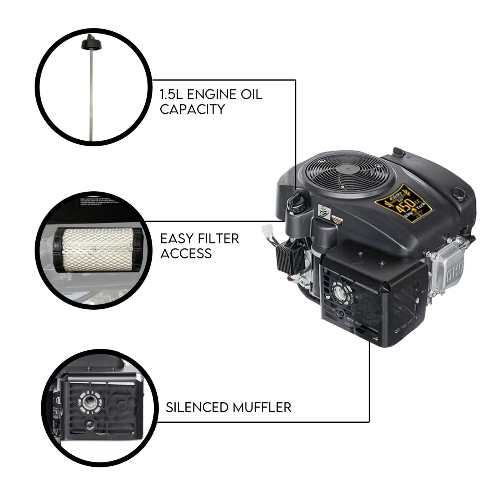 Please note this is a universal fitment engine and some modifications to the engine or mower might be needed, including but not limit to the muffler, exhaust system and/or electrical wiring. If you are not familiar or confident to do so, please consult small engine mechanic before purchasing, installing and using.