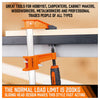 • Cast-iron stationary and sliding heads with an orange, powder coated finish are merged with a high-carbon, rust-resistant steel bar make it strong and durable.