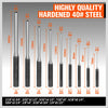 9 pieces roll pin punch set is made of highly quality hardened 40# steel, drop forged, heat treated & knurled steel for extreme durability, workability.