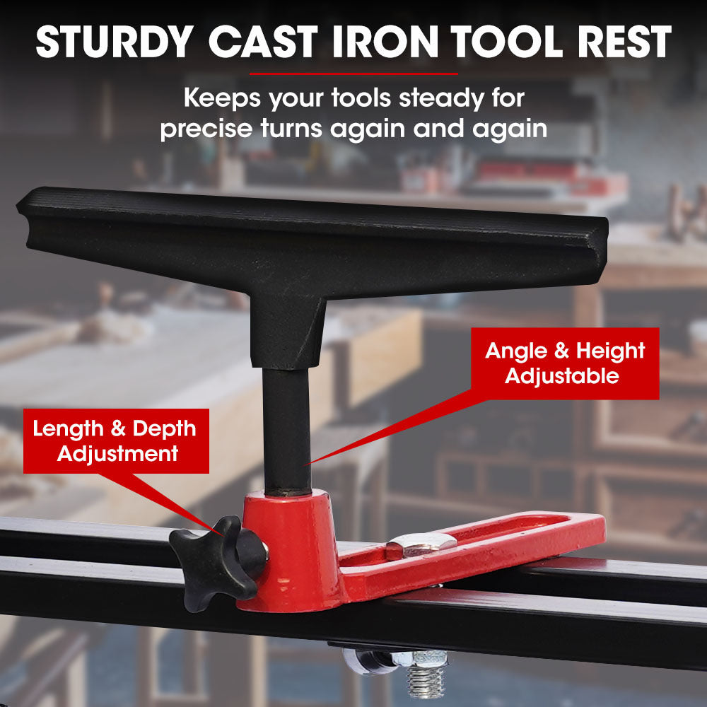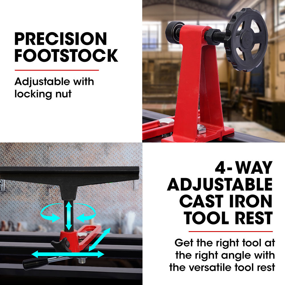 The BM-LDL4 has all the features you need to turn professional quality projects: A height, depth and angle adjustable cast iron tool rest that provides a steady tool resting point, a cast iron foot stock with a tapered that offers excellent stability, and is bench mountable.