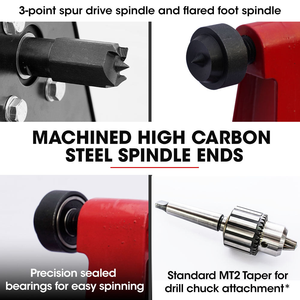 The nose shaft features an 18mm flared end with a 1mm centre taper to prevent slipping and assure mounting accuracy. The drive shaft can also be removed and fitted with a drill chuck*. The headstock and foot stock have sealed bearings to prevent dust contamination.