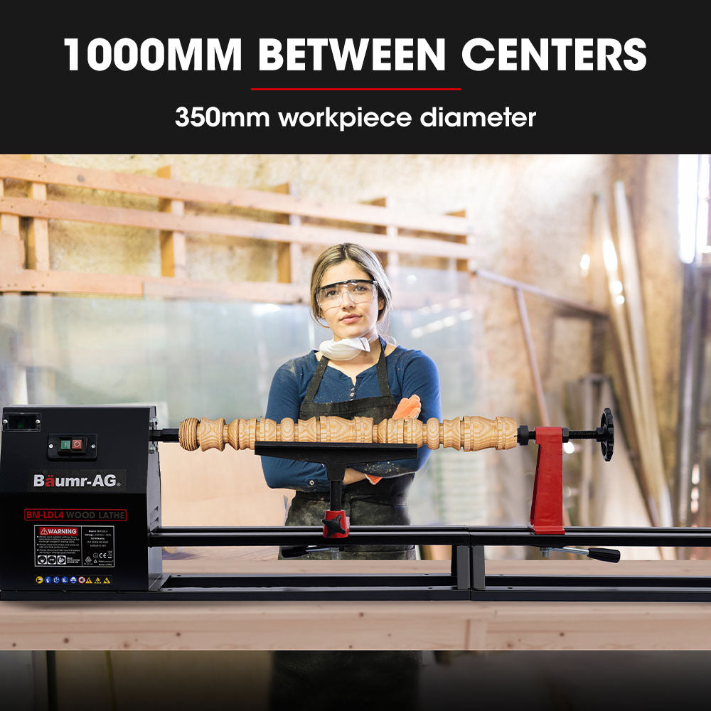 The Baumr-AG wood lathe machine features a max workpiece length of 1000mm and a maximum workpiece diameter of 350mm. You can turn any project to be handled on this professional-grade machine. This lathe is built to last and is extremely stable with minimal vibration at all speeds.