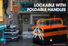 The tools are fitted within PVC moulded inserts contained in all compartments of the cantilever box. Each compartment opens out at a flat level, which makes finding and accessing each tool a cinch. The padlockable lid and foldable handles provide security and safe, compact transport. This all-inclusive compact unit contains an incredible 118 pieces and fits discreetly on a workbench or shelf.