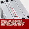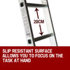 Constructed from strong yet lightweight aluminium means it's durable and yet still easy to carry and set-up. Quality easy to use locking levers will ensure you can set-up and pack-up with ease and be sure of total stability while you work. While the rubber feet provide slip resistance and protect flooring from damage.