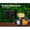 When low water pressure gets you down, power it up with our Giantz 5-stage Water Pump. It is the perfect solution where constant on-demand water pressure is needed at the open and close of any tap. You will find our water pump particularly useful for homes, household gardens, farms, commercial entities or any situation where pressurised water is consistently required. The water pump features an IP-rated commercial motor, full stainless steel pump body, cast iron ends, 1.25'' inlet and 1'' outlet ports, corrosion-resistant brass connectors, efficient cooling system and not least, built-in thermal protection. Pumping out at a rate of 150L/min with a 60m head, the 2000W water pump can send water up to two stories high effortlessly. You can also accurately control the pressure to your precise requirements with the fully automatic controller and monitor it at a glance of the pressure gauge. Power to the pump is as simple as plugging it straight into any Australian standard socket. Whether you are using the pump as a permanent installation or on an ad hoc basis, you can be assured of dependable and reliable water supply in more ways than one.