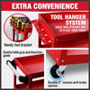 Our HORUSDY  Tool Cart is designed to help make your tasks a lot easier. With its heavy-duty powder-coated reinforced steel construction, the rust-resistant cart can stand up to daily on-the-job robust use with little hassle. Three tiers of storage ensure that there is ample space to organize you tools and components for easy accessibility. The handy tools hanger also allow you to have your go-to tools close at hand and easy retrieval at all times. Not least, the castors are omni-directional.