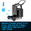 Of course, fun as it is, welding does ask for a strict safety protocol - and you can rest assured that the Rossi Deluxe ticks the boxes. Designed in powder-coated commercial steel, it features solid build quality throughout, with details such as a single wheel axle, spring washers and double tank chains being a given. This translates into a carrying capacity of some 95kg; you can load her up to your heart's content.