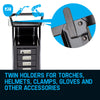 In search of the perfect weld, you should forget all worries behind and steady your hand. The Rossi Deluxe makes sure you can. With four storage drawers and twin hooks there's plenty of space for the welding unit, wires, rods, mask, tungsten nozzles and everything else that's required for a successful fusion, you can focus entirely on the work at hand. And you can work quickly, too; thanks to its solid-rubber rear wheels and nimble 360° swivelling front wheels with brake, your Rossi Deluxe is a breeze to move around the workshop.