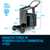 Featuring an angled top shelf for optimal access to welder controls, the Rossi Deluxe offers all you need to keep things tidy and streamlined for your MIG, TIG, SMAW, FCAW or plasma setup. So, order your Rossi Deluxe welding cart today and put the spark back into work again!