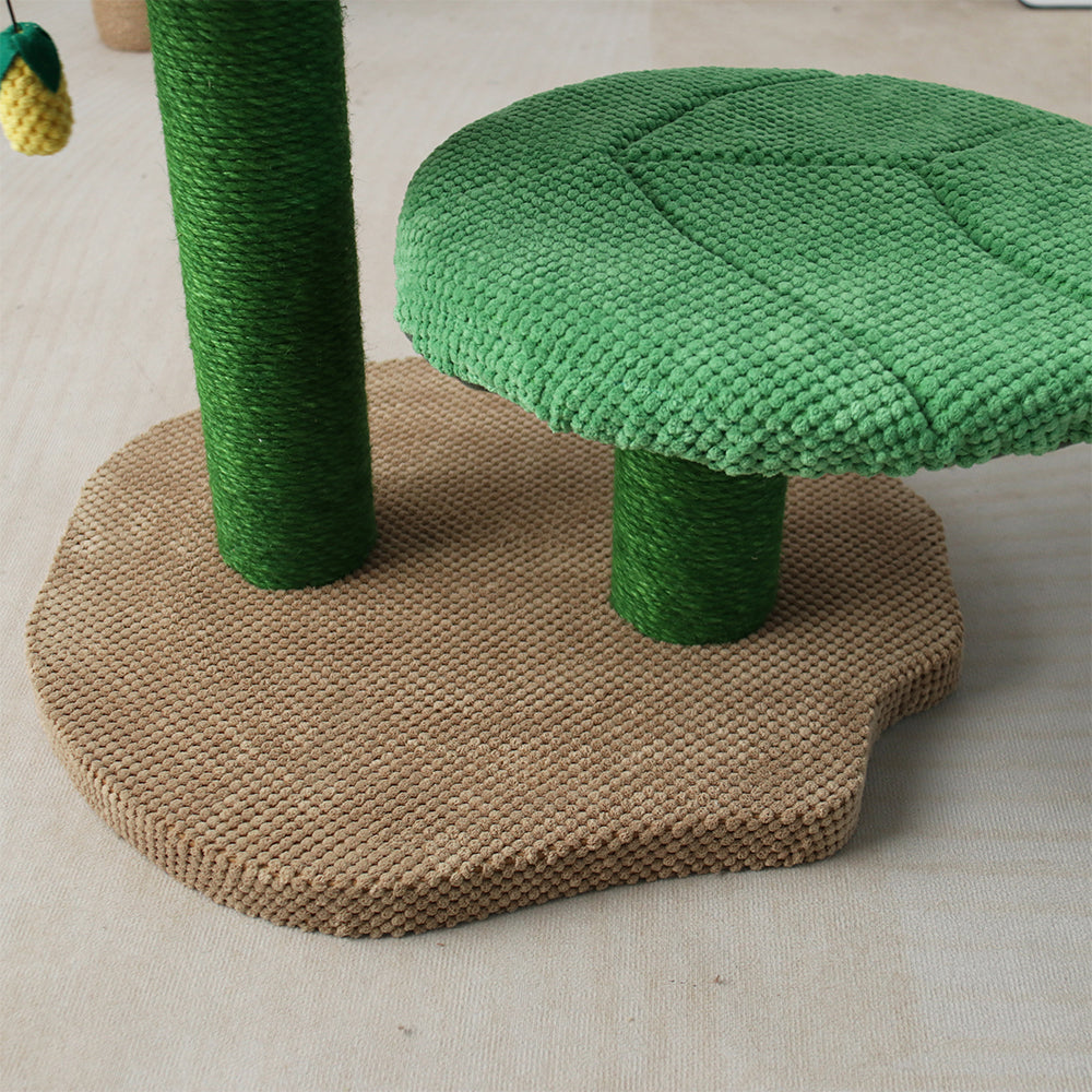 Crafted with natural dyes that are completely safe, it boasts a stable base that ensures it won't topple over, granting your furry friend a secure space to scratch, climb, and play. With two inviting platforms for serene naps, including a luxuriously soft fabric yellow camelia platform, this cat tree is a delightful addition to any living space. Plus, a hanging cat teaser keeps them engaged and entertained for hours on end. Cleaning is a breeze with the removable cushion.