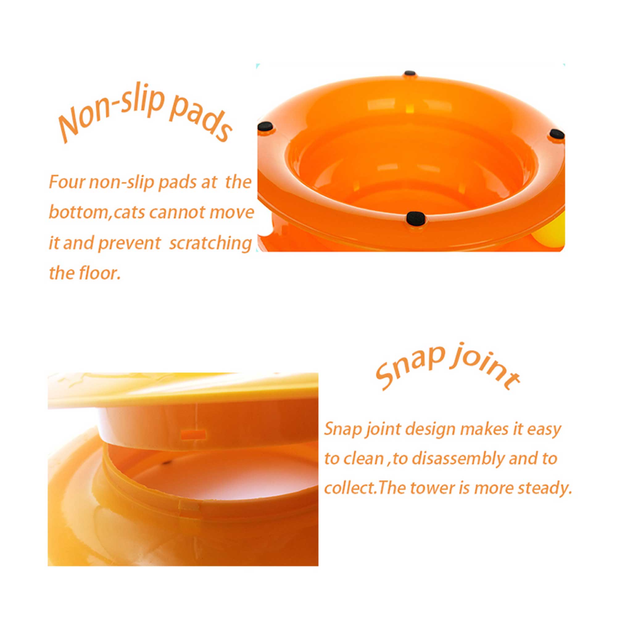 With 3 levels for 3 times the fun, Tower of Tracks multi-tier kitty ball track features colourful moving balls and a light up LED light and sound  ball, which are irresistible to pets. A cool way to attract your cat’s paws and claws away from your furniture, the batting and chasing puzzle play toy provides endless active fun for cats and kittens as they move and control the spinning balls.