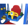 Playing is the best way to learn when we�re young. The Ruby 4 in1 swing and slide for kids under 3 is the ideal play centre for little learners to develop cognitive and motor skills with a 1.2m climb and slide, secure bucket swing, interactive music button, and basketball hoop. General Structure - Injection Molded HDPE Plastic - Non-toxic and Recyclable Material - Easy Tool-less assembly - UV Resistant Coating Safety - Meets EN-1/2/3/8 European Safety Standards - Please allow a safety perimeter around the Swing to prevent any collisions. - Equipment must not be installed on cement, asphalt, or any other hard surface. - Outdoor/Indoor domestic use only - Recommended Age: 10 months and above Assembly Required: This product comes partially assembled in a box with assembly instructions included.