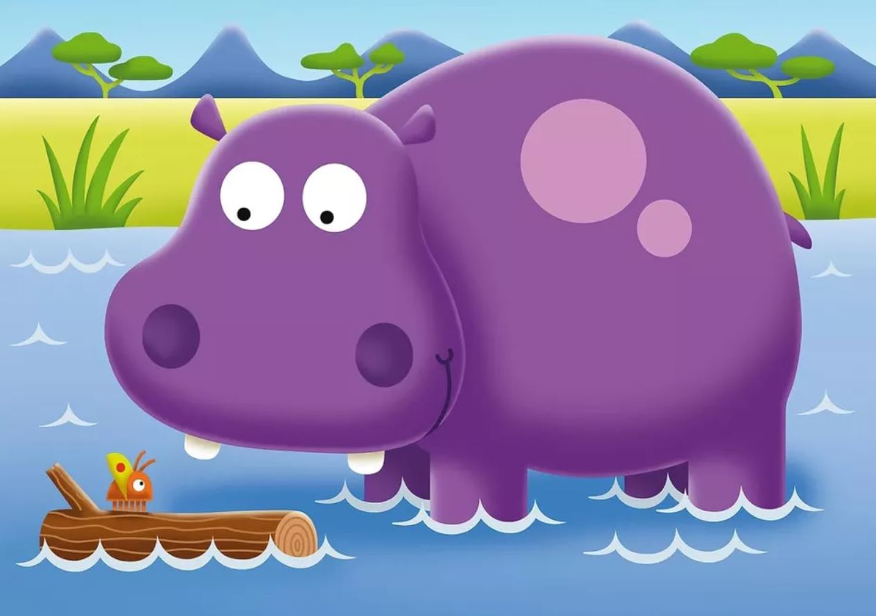 Four bright and colourful puzzles specially designed for children. The puzzles feature images of Hippo (a jolly hippo), Trunk (a cute little elephant), Zeb (a funky zebra) and Roar (a smiley lion), shown within brightly coloured safari backgrounds. A lovely Animal toy