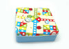 Tin Box Game Ludo and Tic Tac Toe. This is a travel edition of the popular and traditional board games Ludo and Tic-Tac-Toe. These games are stimulating for both young and old, and ensures great fun for your trip. Wooden pieces are painted with non toxic paint. This games comes in a lovely tin box so packing up is a breeze. 3 years plus. Size - 15 x 15 x 5 centimetres.