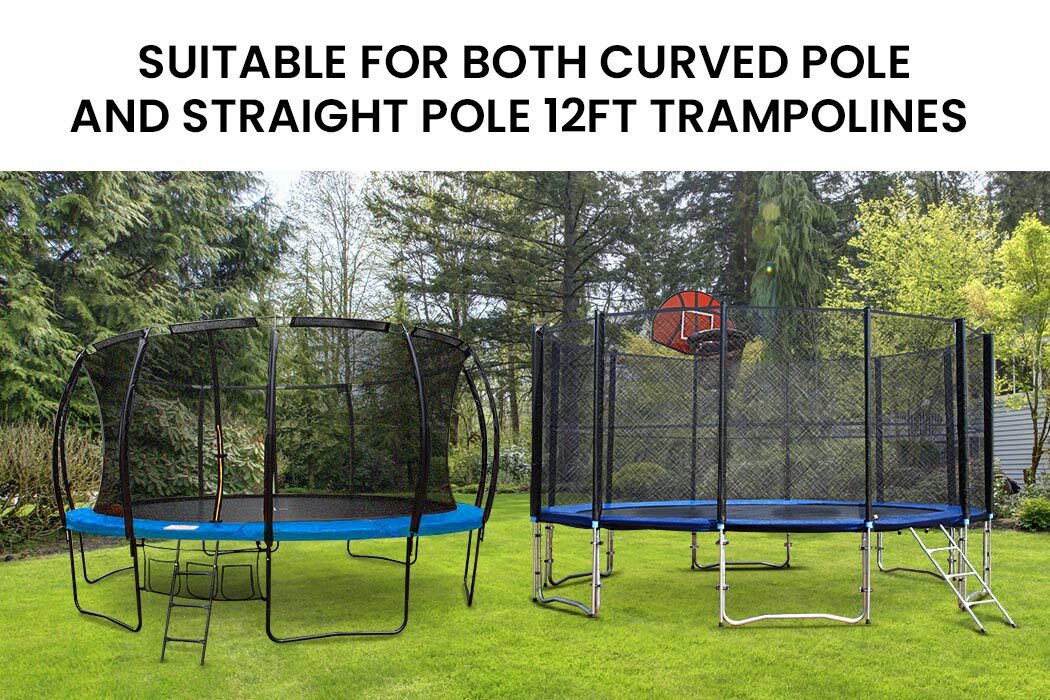 This universal design replacement padding is easily secured with elastic ties and fits over the springs of both curved pole and straight pole 12FT spring models of UP-SHOT and other brand trampolines. This high-quality edge-to-edge pad is made from waterproof UV resistant PVC material and high-density anti-microbial vinyl to provide protection from the elements. The thick and comfortable encased EVA foam allows for countless hours of comfortable cushioned fun!