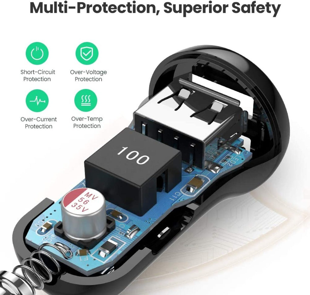 With the engineer-grade materials and premium circuitry, even on bumpy roads, Heardear car charger provides the fastest possible charging at a speed up to a total of 4.8 amps of two ports. Far better than any other device on the market!
