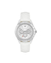 White Quartz Fashion Watch with Rhinestone Detail One Size Women