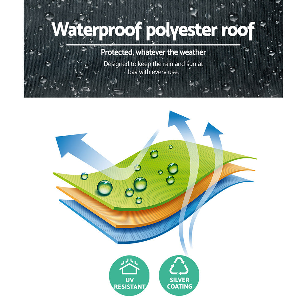 In your garden, at an outdoor BBQ or sports event, on your travelling vacation or on market days, our INSTAHUT Pop-up Gazebo is your ideal solution for instant cover outdoors. With a wide roof coverage of 300cm by 300cm, the exceptional cover is made of durable silver coating 210D Oxford fabric that is both UV and water resistant. Height can be easily adjusted with four pre-sets, ranging from 232cm to 250cm. It also features two zipped entrances and insect-proof mesh walls. Plus, the powder-coated steel frame, cross-bar frame work and steel supporting legs mean that this gazebo is no easy pushover from man or weather. The gazebo can be set up in minutes and kept away just as quickly in your car boot, van, trailer, garage or shed. Thanks to its portable design, quick and convenient hook and loop attachments, fast release and fasten rings and handy nylon inserts for hassle-free use.