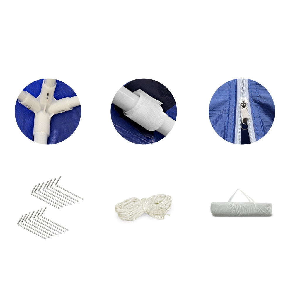 Featured with a variety of ground and canopy coverage, and door and window panel permutations, our INSTAHUT canopy lets you choose the configuration you require to meet your need. All panels are removable and can be adjusted for different positions. The sturdy powder-coated steel legs and struts keep the entire structure steady and firm in all weather conditions whilst the canopy is both UV and water-resistant. The interior is spacious and the openings provide ample ventilation to let occupants stay cool and comfortable at all times. Not least, all components are easily held together with convenient heavy-duty zipped and velcro attachments.