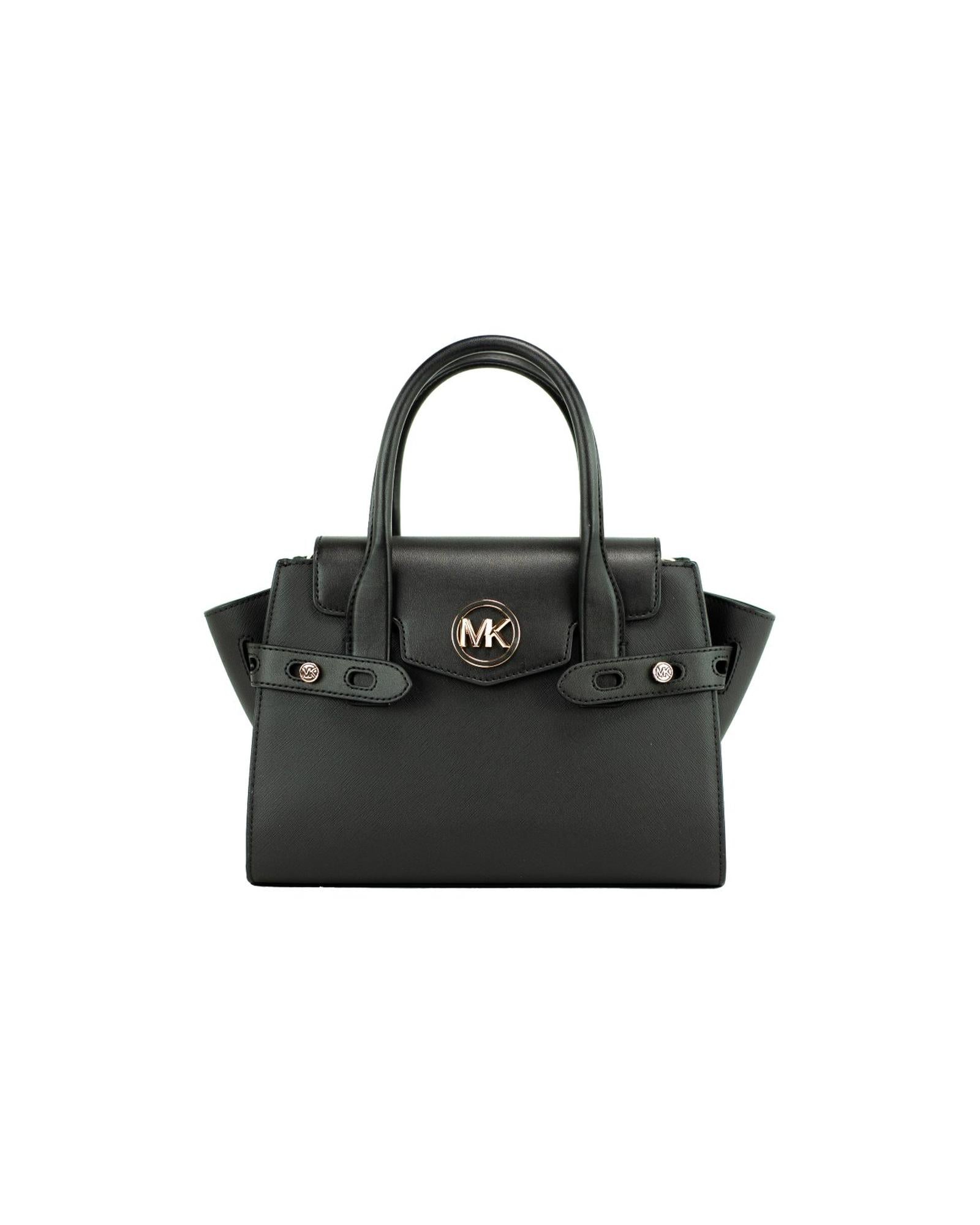 Michael Kors Women's Car Medium Black Gold Saffiano Leather Satchel Handbag Purse Bag - One Size