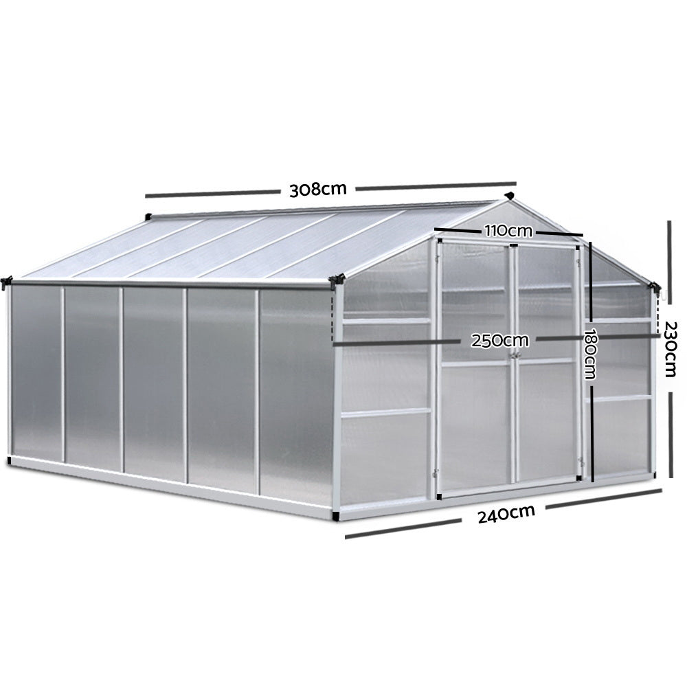 3.08 x 2.5M Polycarbonate Aluminium Greenhouse