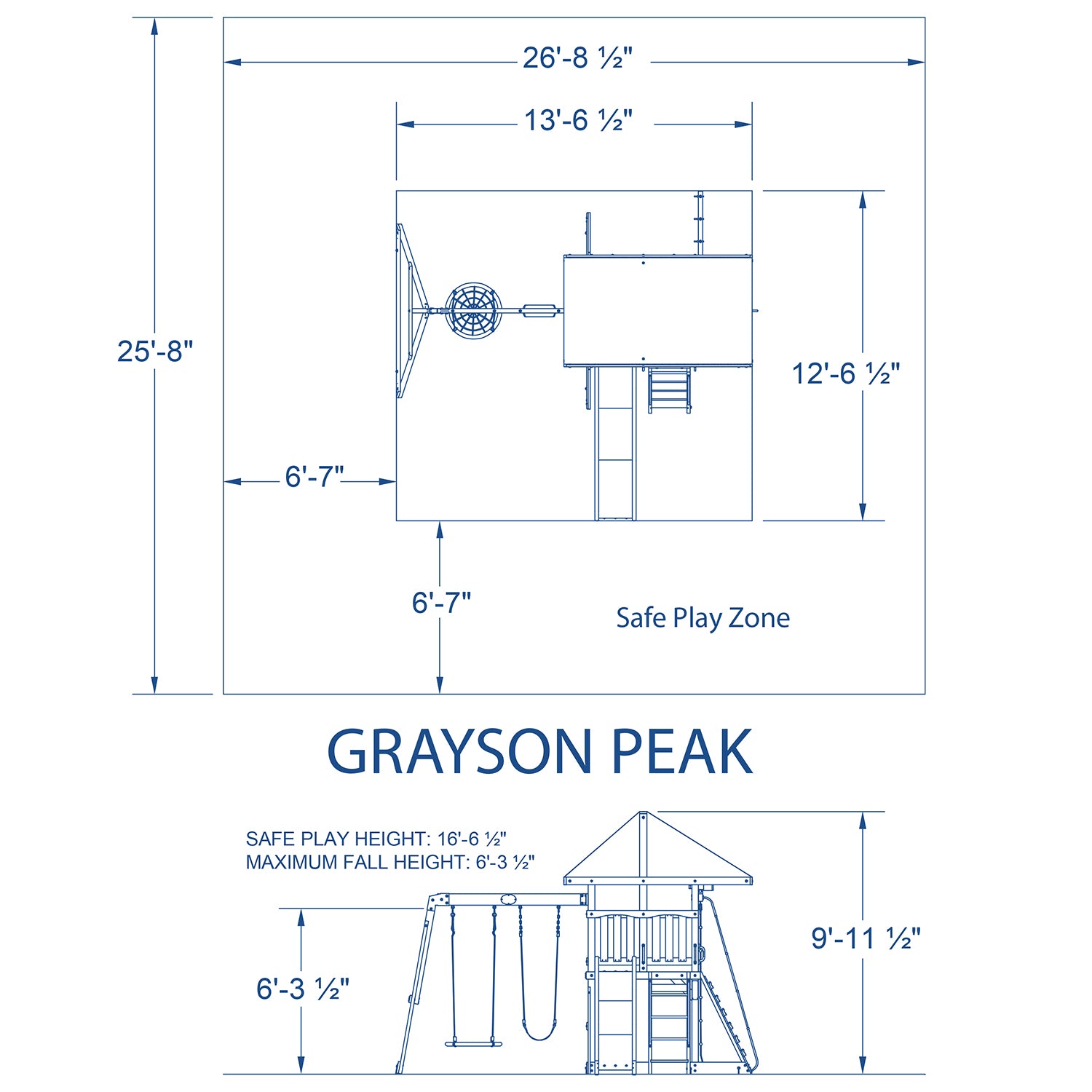 Loaded with fun and inspiring play options, the only concern on the Grayson Peak is where to start. Climbing up to the oversized upper fort area has never been more exciting with the choice between the challenging rock-climbing wall, suspended climbing rope or flat rung stairs. At the upper clubhouse little ones can sit back and relax under the shaded area or soar down the wavy 2.4m slide. The belt swing and web disc swing allows two little ones to swing and laugh side by side.