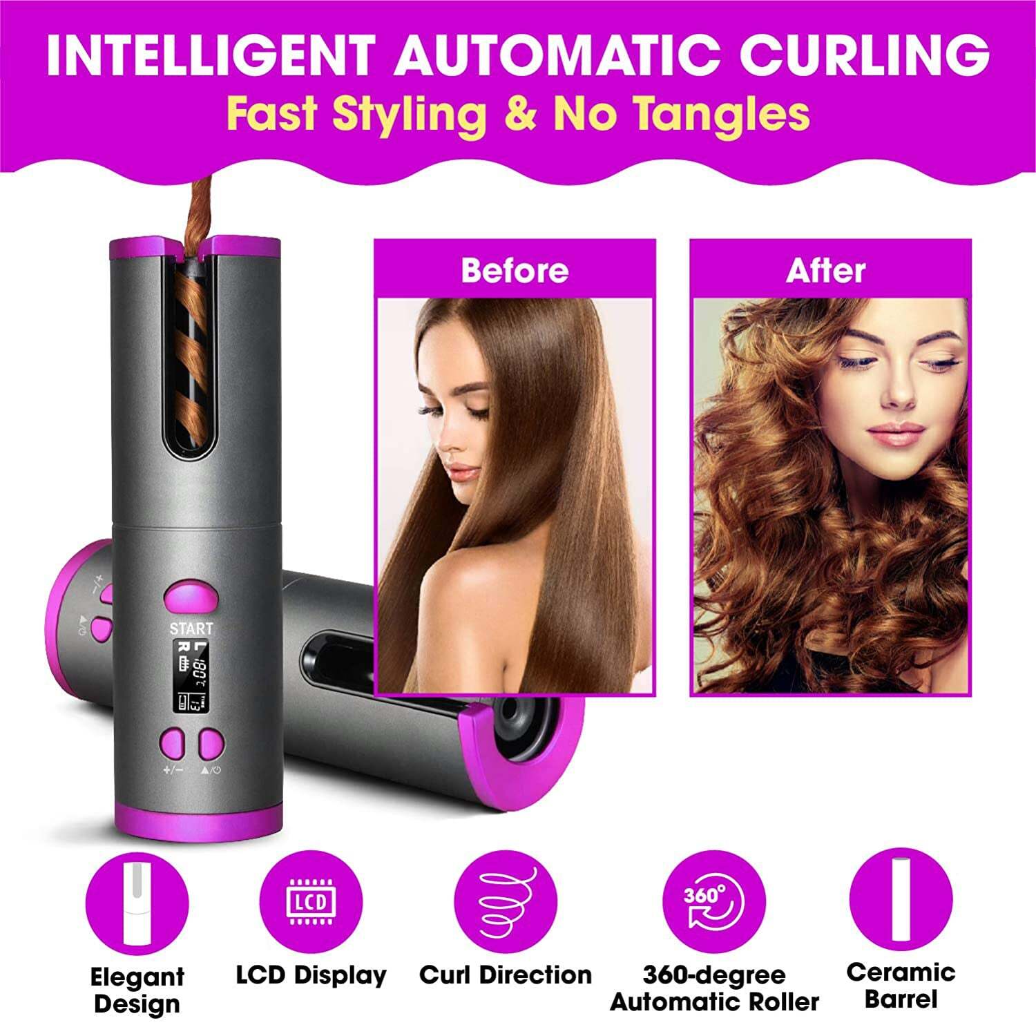 Curling a full head of hair can take a lot of skill, practise and time with a traditional curling iron. This Cordless Automatic Hair Curler set eliminates all those factors for quick and easy curls for all hair types including fragile, soft, fine, coarse and strong.