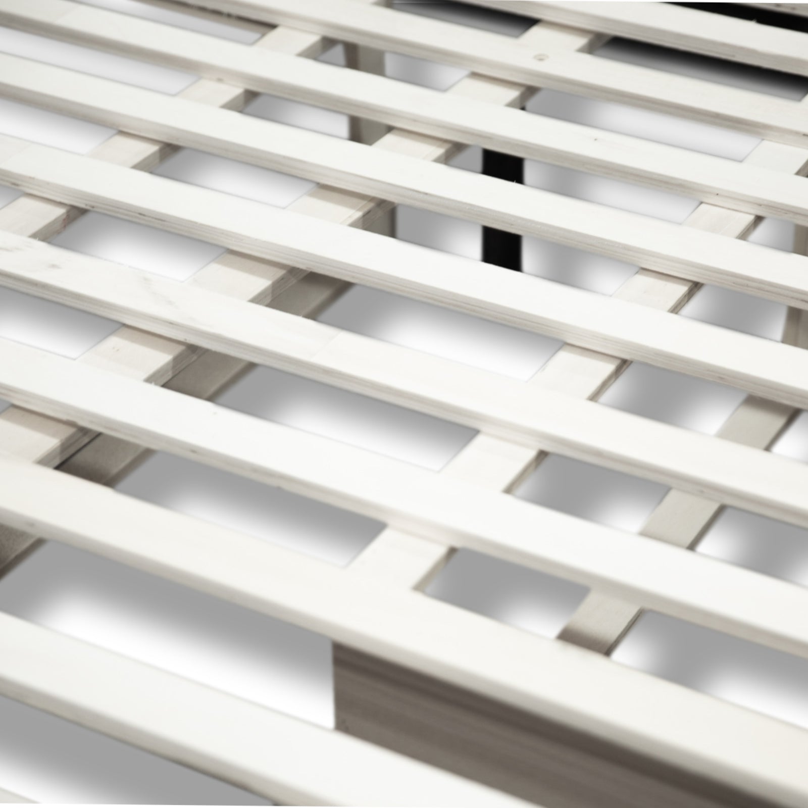 Now is the time to transform your bedroom into an ultra-luxurious retreat. Fill your personal space with this beautiful double bed with 4 drawers having an eye-catching look and design. The magnificent furniture piece in stone colour is made of sustainably harvested MDF wood, and special particle board. MDF wood is known for its resilience to moisture damage and great strength. Fully upholstered in soft polyester, the bed features thick foam and a comfortable bedhead with tufting and classy details. Robust legs made of rubber wood, strong slats, and central support provide the bed with toughness and great durability. The slats give it an excellent weight-bearing capacity. Not only that, 4 spacious drawers - 2 footboard drawers and 2 side drawers' maximize storage space, giving the bed great usability. All the drawers have full metal extension runners that help you keep the room tidy and well organized. The double-size bed that goes well with a variety of interior decor styles comes with a one-year warranty.