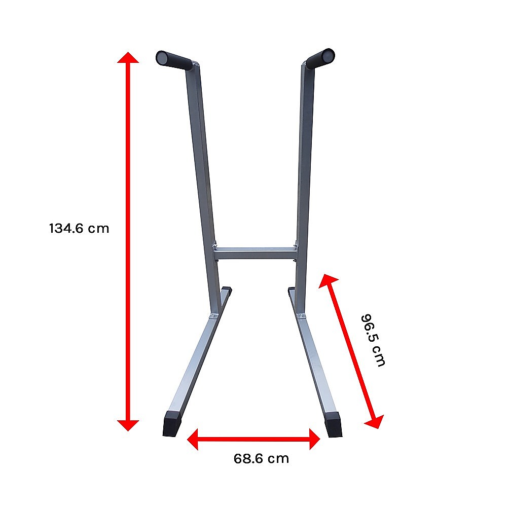 The Randy & Travis Solid Dip Station will give you the upper body workout that delivers - it builds your shoulder strength, thickens your deltoids and develops your triceps. This sturdy device gets its balance from the wide, extended base that ensures stability. The 2" x 3" heavy-gauge steel uprights are suitable for users of all size. Your safety and comfort is ensured by the oversize 1" bars that feature extra-thick, slip-proof rubber grips in any position required by your exercises. This amazing piece of equipment can be used at the home or at the gym.