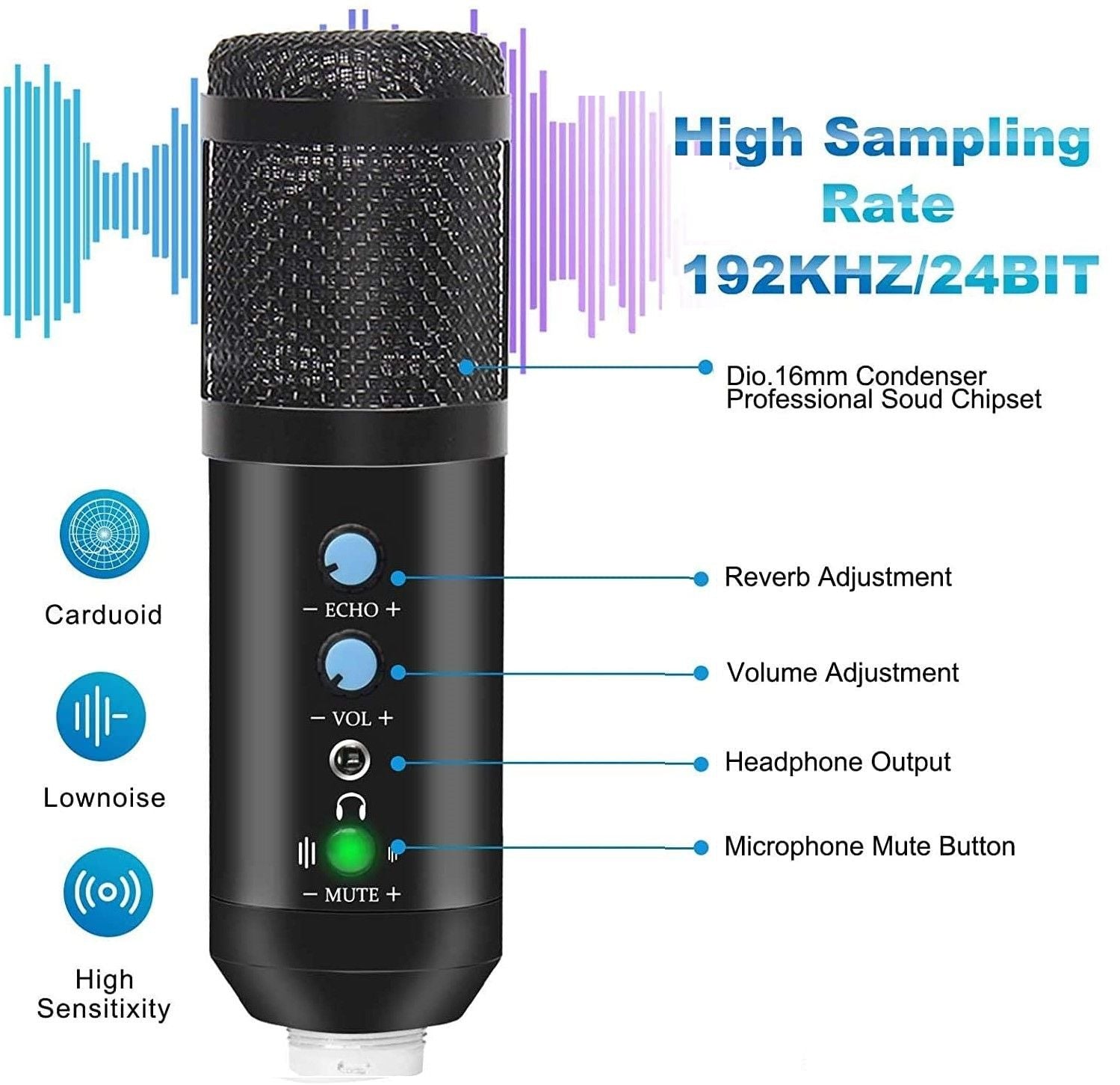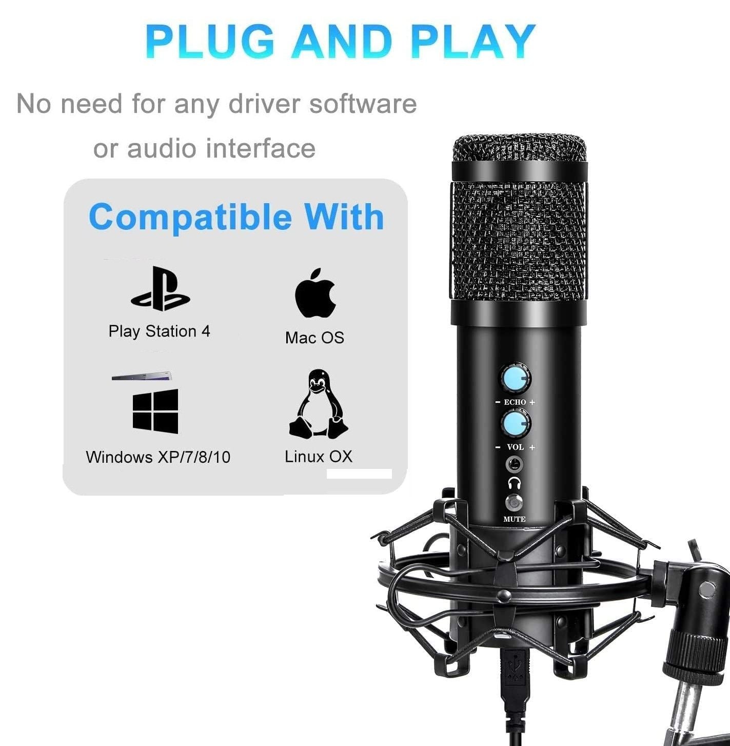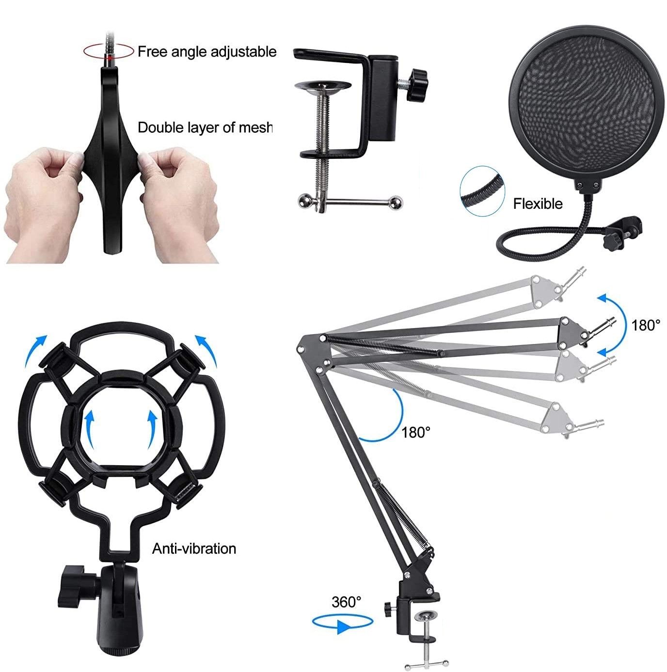 USB Condenser Microphone Kit with Adjustable Scissor Arm Stand Shock Mount for Podcasting, Gaming, Studio and Home Recording