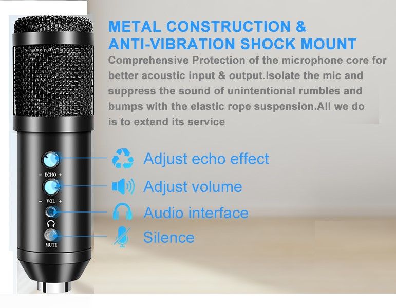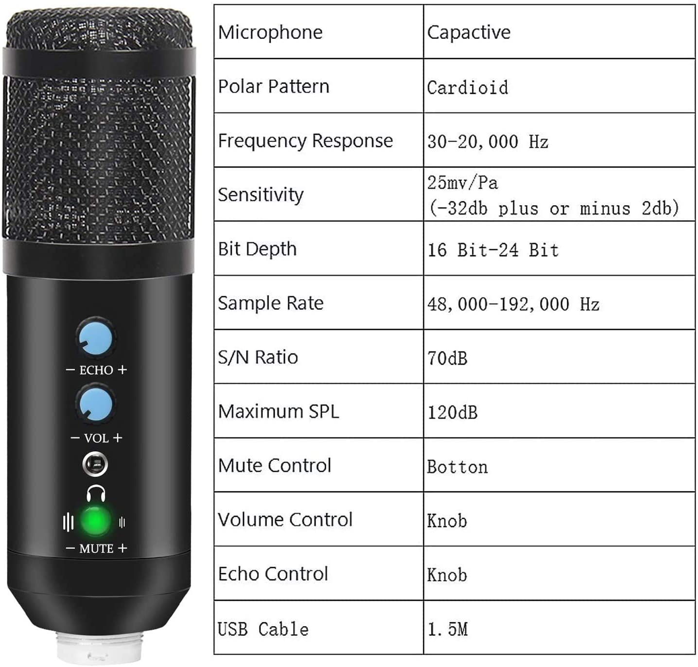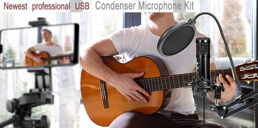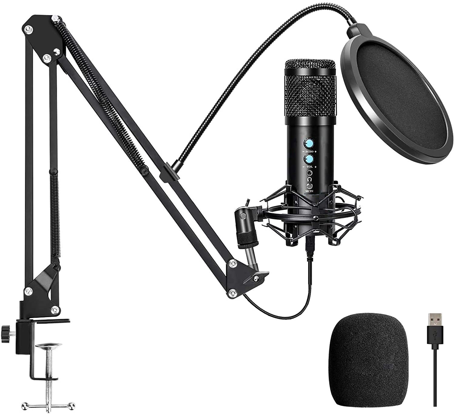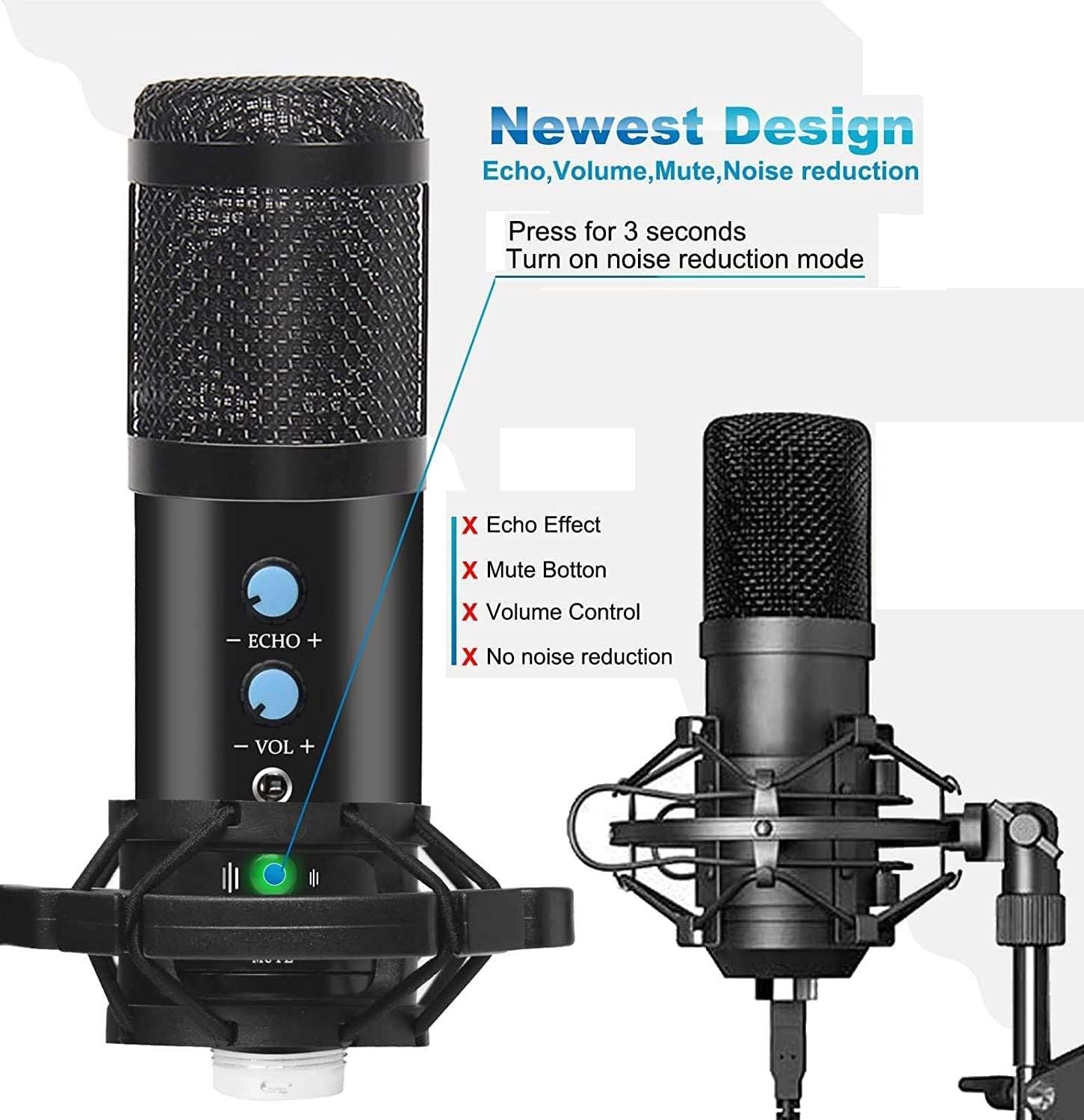 USB Condenser Microphone Kit with Adjustable Scissor Arm Stand Shock Mount for Podcasting, Gaming, Studio and Home Recording