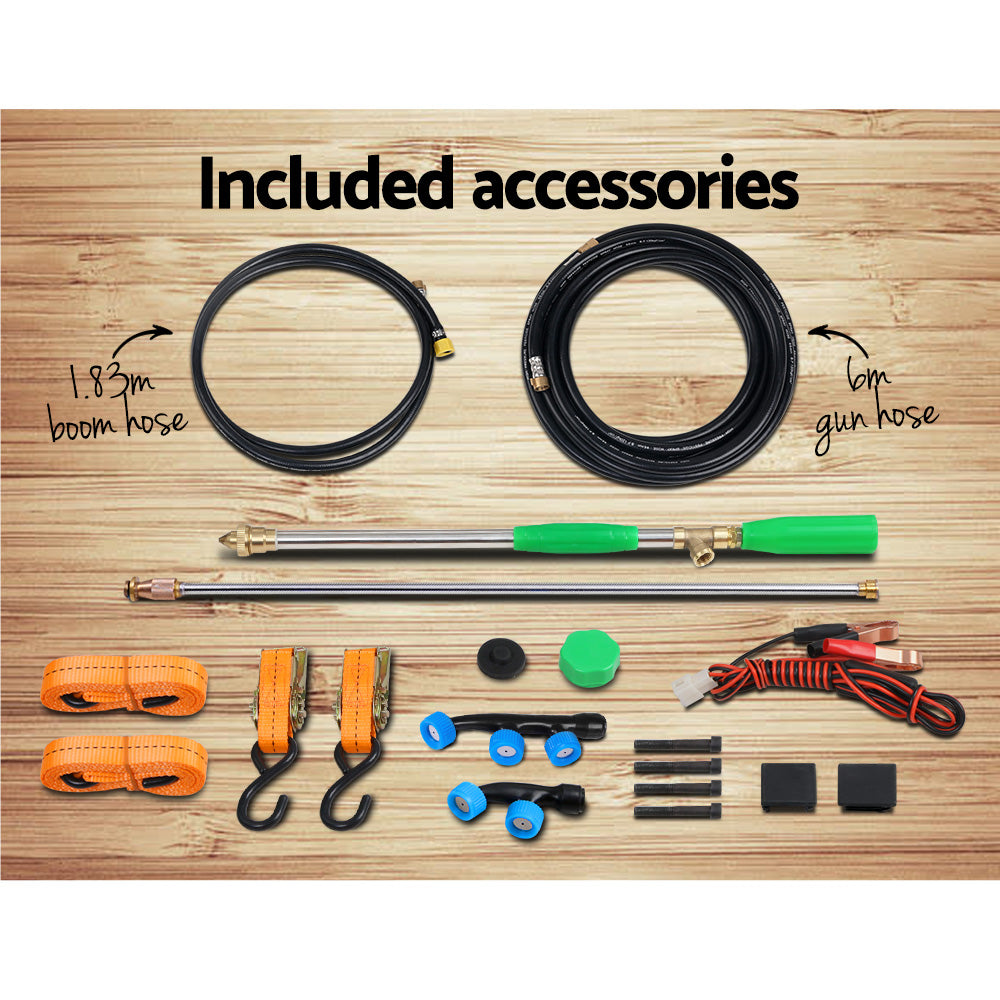 Driven by a self-priming, run-dry protected pump with a massive 100psi 13litres/min flow rate, our Weed Sprayer makes light work of all spraying tasks. When mounted on an All-Terrain Vehicle (ATV) or similar vehicles, the Weed Sprayer really takes advantage of its 3m boom with three spraying options to provide optimum coverage on just one run. The leak-proof 100L tank also ensures more work done with less down time. All components are designed to withstand robust use in any weather condition, including a 6m high pressure chemical-grade hose. Also included is a handheld spray nozzle. Not least, the boom support poles are adjustable for low or high level spraying and the boom itself is foldable for easy storage.